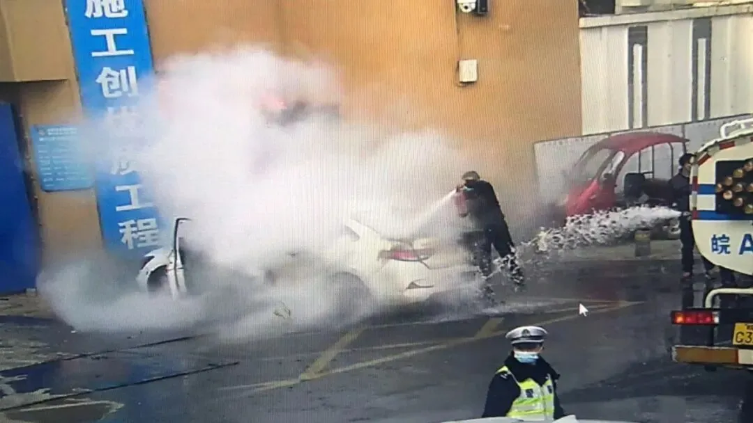随后,消防车也赶到现场,对车辆进行全面的火情处理,从而彻底解除火情。