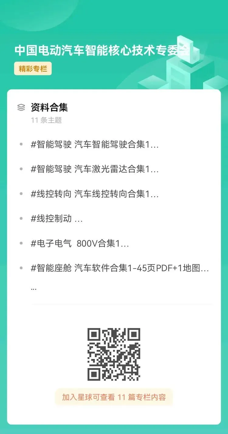 方法一:请扫下方二维码,加入中国电动汽车智能核心技术技术专家委员知识星球,快速获取更多智能汽车资料合集