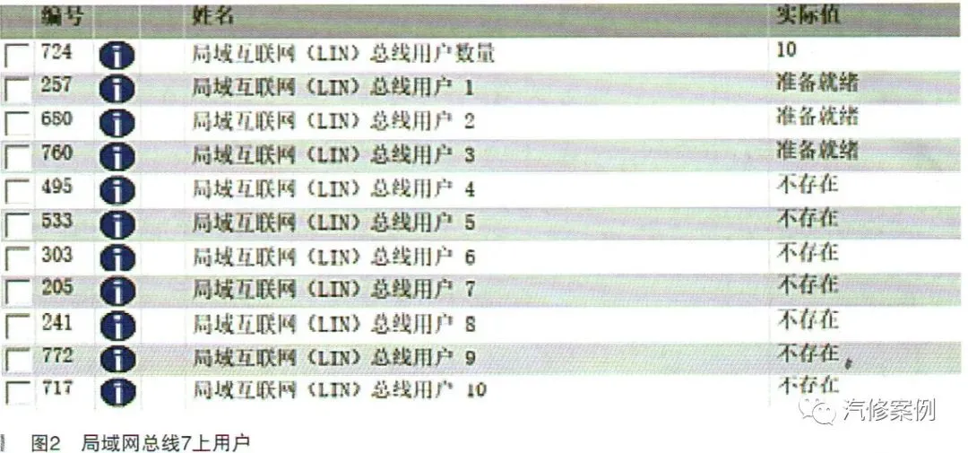 根据故障码导向,指向的是局域网总线7上的故障,那么局域网总线7上的用户有哪些呢?如图2所示。