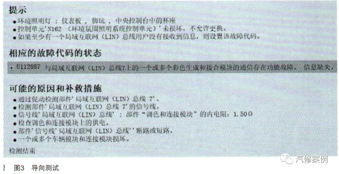 从这个故障案例中可以收获两个知识点:第一,新款奔驰氛围灯是模块化控制的;第二,诊断氛围灯也要用到LIN线的知识。