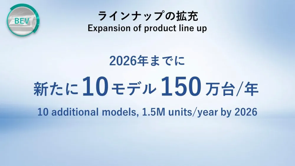 最后,细化章男目标,将“ 2030 年纯电动车年销量 350 万台”和“投放 30 款新车”的长期目标,打散为颗粒度更细的“2026 年之前新投放 10 款纯电动车,全球年销量达到 150 万台”以及“成立能支撑 1000 万台纯电车规模的新部门,推出新一代纯电架构,2024 年投放 2 款在中国本土开发的纯电车”。