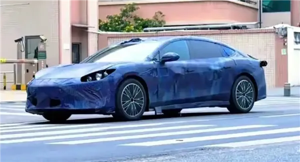 从曝光的谍照细节来看,新车的外观设计极具动感基因。前脸采用纯电车型标志性的封闭式布局,两侧椭圆形大灯造型独特,辨识度拉满;下方保险杠配备大尺寸进气口,为整车增添了不少运动气息。