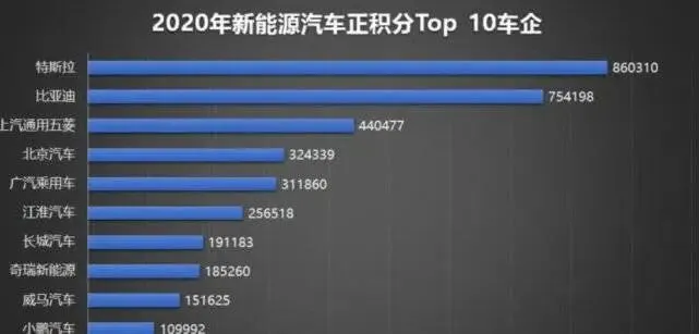 另一种方式,就是多卖新能源汽车。比如上汽通用五菱2020年度,获得了44万新能源正积分,为上汽通用解决92万负积分提供了一定的保障。