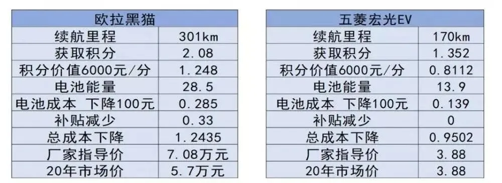 以长城汽车旗下欧拉品牌的欧拉黑猫为例,2021年,一辆欧拉黑猫可获取新能源正积分2.08分,每分价格计为6000元,电池成本可下降100元/千瓦时,磷酸铁锂成本的降幅更大,虽然补贴减少了,但总成本仍可降低1.24万元。也就是说,电池成本的降低足以抵消补贴减少对企业造车成本的不利影响。