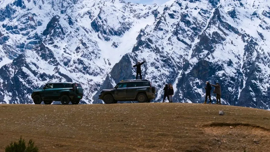 不在乎,是因为猛士917动力强劲,响应和扭矩等性能都十分出色。5000多公里跑下来,楼佳宁觉得它像个「灵活的胖子」,兼具力量和灵敏精密。天山大峡谷里有的弯道半径非常狭窄,楼佳宁使用猛士917的后轮主动转向功能,总能自如地通过。楼佳宁生活在杭州,自嘲是没有雪地驾驶经验的「小白」,经过沙漠、雪地时,开启猛士917的相应驾驶模式,就能轻松驾驭,不用担心行车安全。