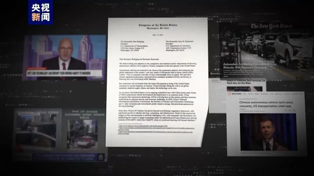 近期,拜登政府“以威胁国家安全”的名义,宣布将调查在中国制造的电动汽车。关于中国电动车是否会窃取数据的讨论也不断增多,甚至导致当前电动车出口增速出现放缓。中国电动车真的会威胁国家安全吗?美国的调查依据是什么?中国电动汽车究竟得罪了谁?为了找到所有信息的源头,我们利用最新的大模型技术,搭建了一个AI数据库。可以实时接入来自全球各地、每天超过6亿条报道。并且,首次通过数字记者在虚拟数据库里寻找线索。当我们在大模型系统中抓取中国电动车和国家安全的标签,将情感倾向选择为负面,近30天,超过了5000条报道。而当我们将时间不断倒退,发现搜索量原本一直保持平稳,直到去年7月开始,才逐渐增加。系统找到了与这些标签关联度最高的内容,指向了这样一封信。这是4名国会议员写给美国商务部长雷蒙多和美国交通部长布蒂吉格的一封信,时间刚好是在去年7月。不过,此时信中针对的是中国自动驾驶车辆。提出,中国企业相继在美国人口最多的州——加利福尼亚州注册、展开测试,就是为了可以收集到更多美国人的数据。