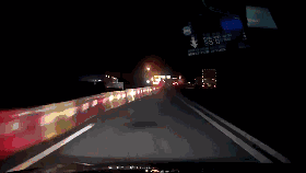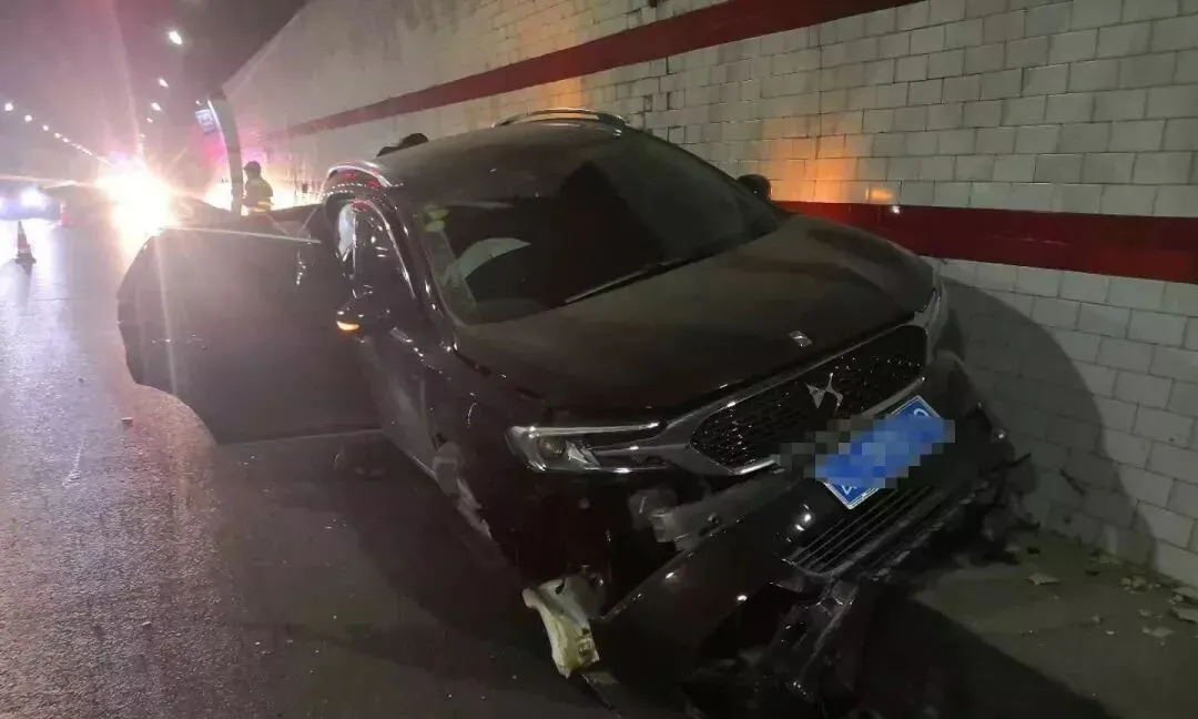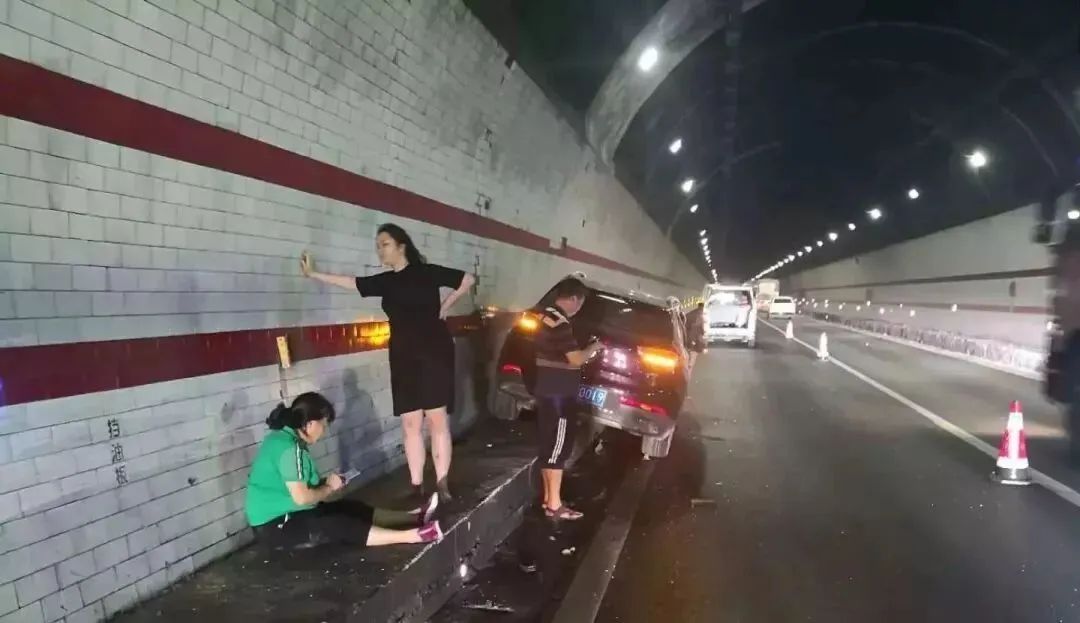 一辆小轿车在隧道内突然撞击右边挡墙