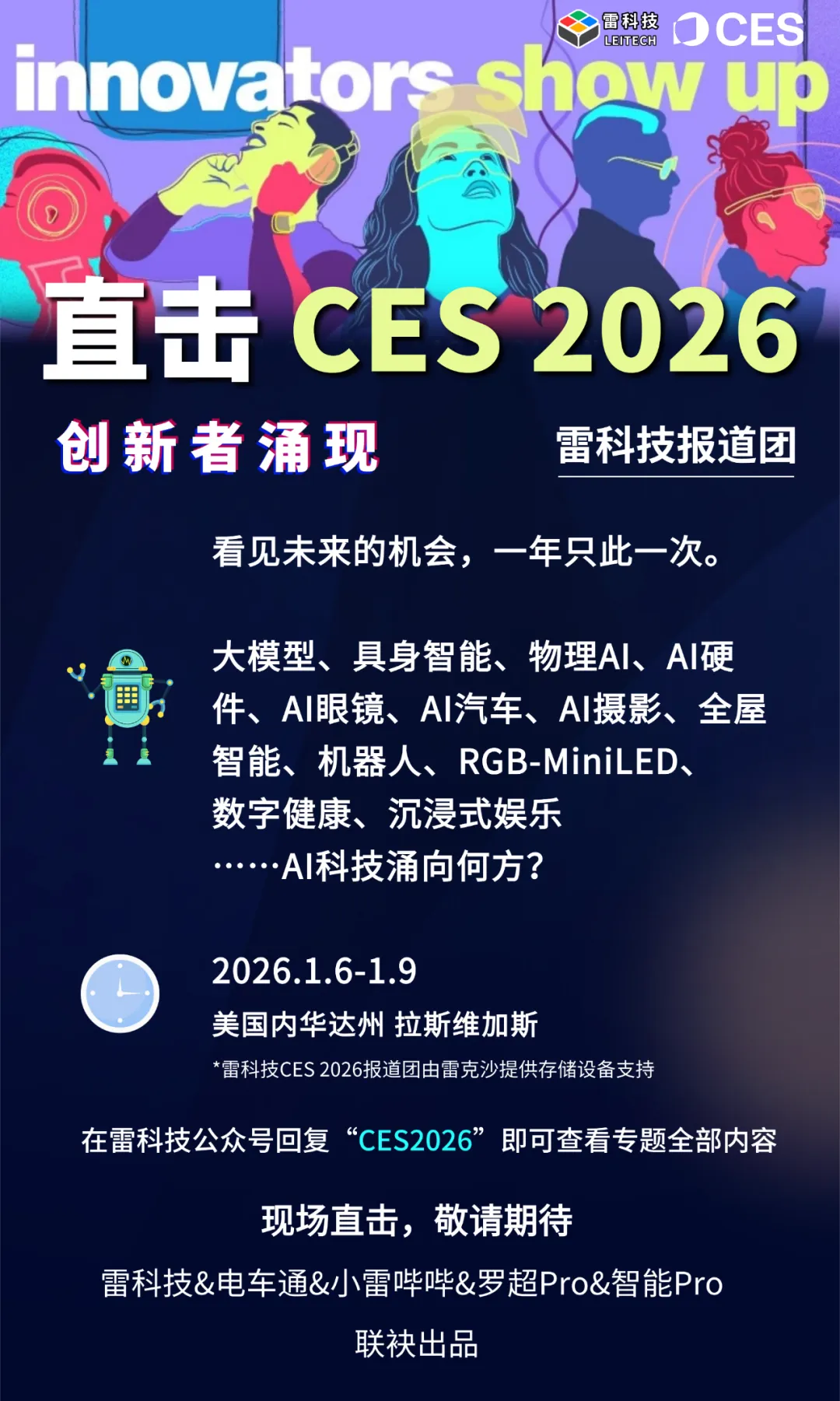 CES2026开幕最后倒计时!(1月6日-1月9日)作为中国报道科技展会最悠久、最深入、最专业的新媒体,雷科技CES2026报道团正陆续奔赴美国·拉斯维加斯现场,即将对CES2026进行一线、专业和立体报道,深度图文、探展Vlog、高端专访、技术解析、产品评测全覆盖,敬请期待!