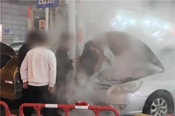 12月19日20时30分左右,揭西县公安局政工室一民警结束工作从局门口外出时,发现一辆停靠在路边的小轿车突发自燃,火苗蹿起,浓烟滚滚,周边车流量大,现场情况十分危急。