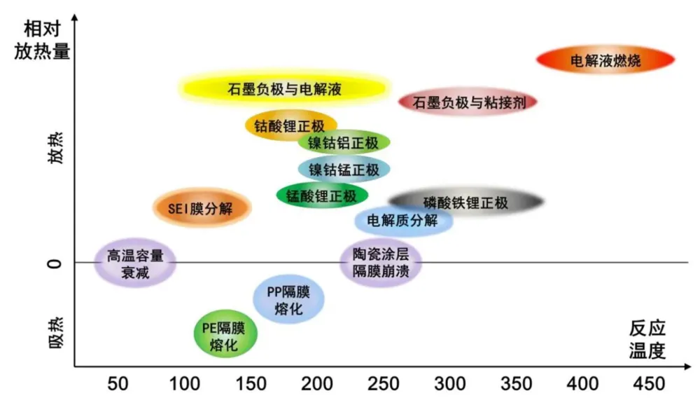 图注:黑色横轴以上的反映均为放热反应,以电解液燃烧情况最为危险