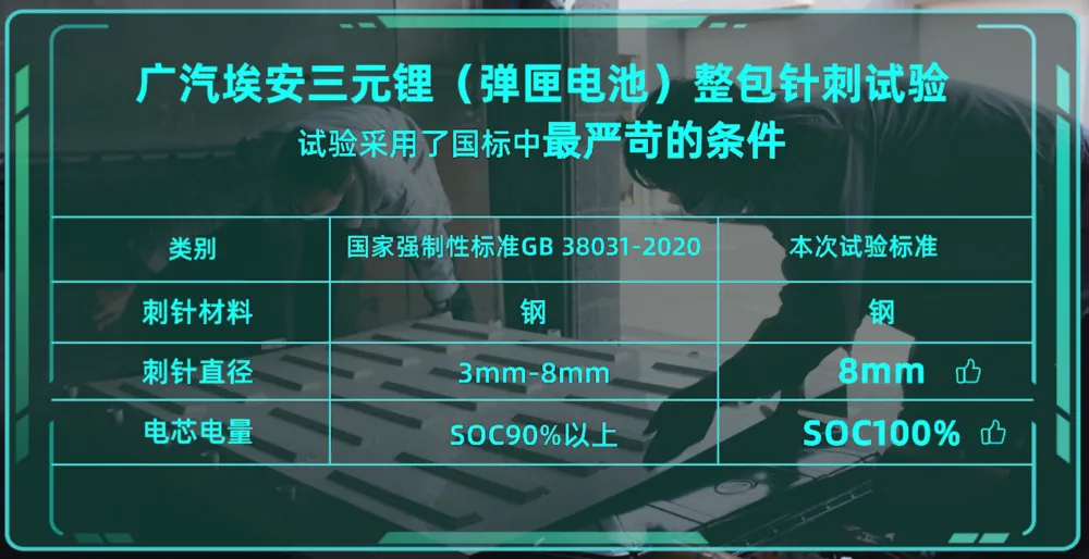 值得注意的是,这场实验里专家们为电池包设定的实验参数,是按照国家标准顶格乃至超出进行设定的。而令人安心的是,即使是这样,埃安的弹匣电池表现依旧堪称完美。
