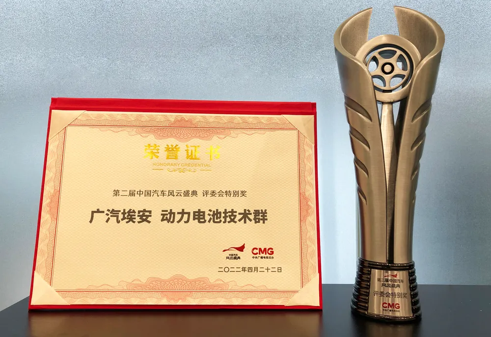 也正是由于达到了业内顶级的技术水平与安全性,埃安的弹匣电池同样得到了行业认可。在历经了四个多月,由中国汽车技术研究中心、中国汽车工业协会、中国汽车工程学会、中国汽车流通协会、中国国际贸易促进委员会汽车行业分会五大行业权威机构的严格测评后,弹匣电池在央视举办的第二届中国汽车风云盛典上以“广汽埃安·动力电池技术群”的身份,斩获了评委会特别奖。