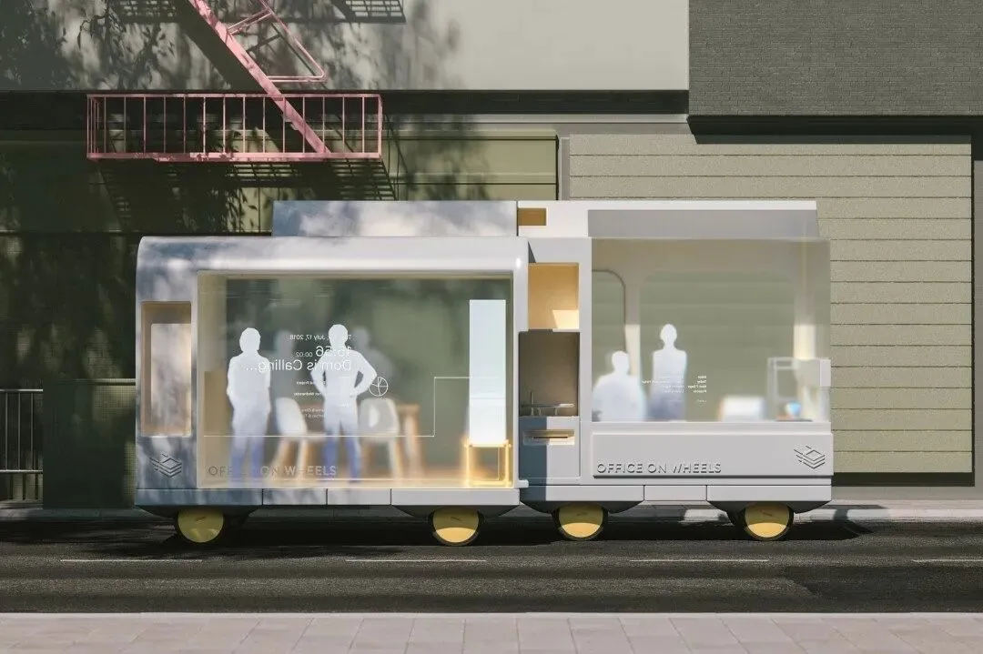 宜家”Spaces on Wheel”办公概念(图源:宜家Space 10)车内乘员数字交互体验不断完善。通过定向声、偏振显示与灯光在车舱内构造场景分区,满足车内不同需求场景下顺畅切换。