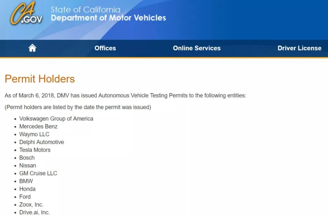 市场规模开始爆发性增长,加州车辆管理局官网上自动驾驶牌照申请获批的企业达到了52家,几乎所有的跨国车企都加入了这场竞赛。百度、苹果、英特尔、三星……这还没算全球各地的高校、未在加州设研发机构的自动驾驶研发企业。榜单越来越长,玩家越来越跨界。唯一不变的是,使用激光雷达作为核心传感器的企业仍然占据着压倒性百分比。