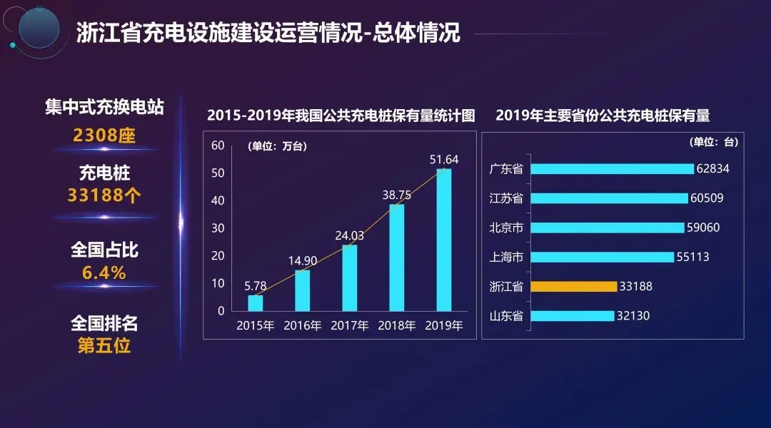 截至2019年底,全省已建成集中式充电站2308座,充电桩33188个,全国占比为6.4%,全国省级排名第五位;其中,公交专用充电站427座,完成“十三五”规划目标107%;城市公用充电站1725座,完成率719%;高速公路城际快充站156座,完成率为98%。