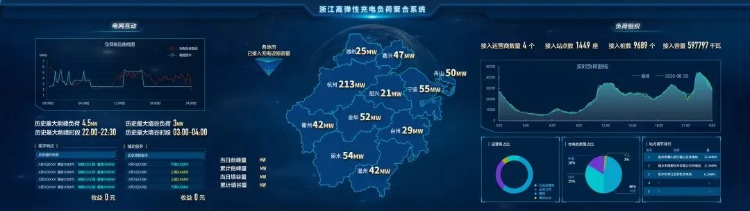 从基础条件上来说,目前浙江电动汽车充电服务网络智能化水平高,具备实时数据采集、传输及功率线性调节功能,为电动汽车负荷聚合并参与电网运行调节奠定了良好的基础。