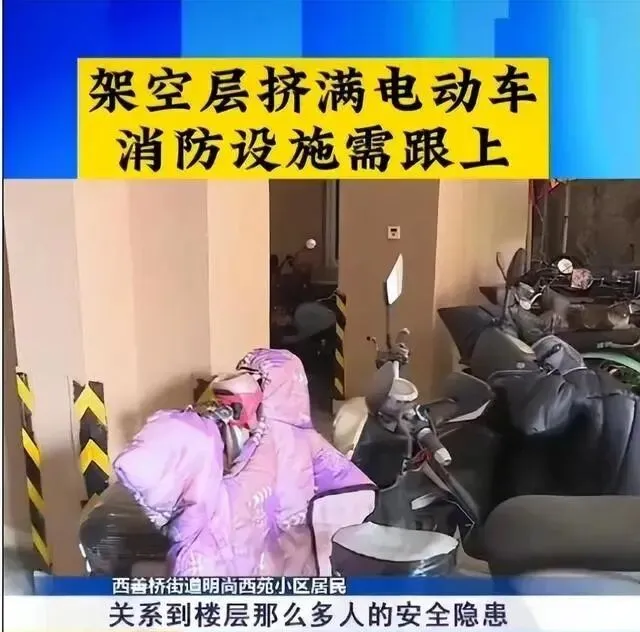 据南京广电《法治现场》栏目2022年4月14日报道,该小区架空层挤满电动车,呼吁“消防设施需跟上”。