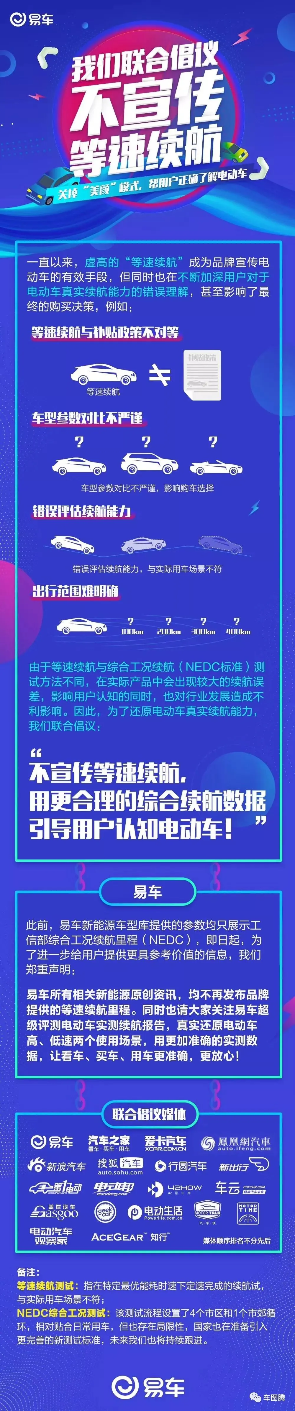 值得一提的是,今天易车、汽车之家、搜狐汽车等发布联合倡议:不宣传等速续航。这对于整个行业来说,无疑也是一大进步。笔者也相信,随着时间的推移,国内的新能源汽车产业会愈发健康、规范和诚信。