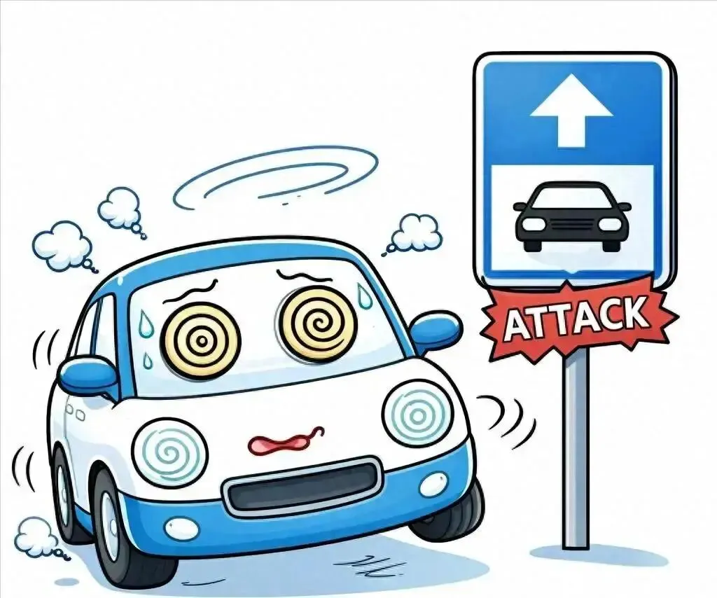 之前行业研究都是静态的,比如在实验室贴个贴纸,车就懵了。可现实呢?光照变、车晃动、行人乱窜……动态场景下,静态测试直接失效。2025年12月10日科技日报实测过:测试车路过贴了特殊贴纸的障碍物,要么完全无视,要么把围挡认成“限速牌”,呼啸而过。太吓人了吧?