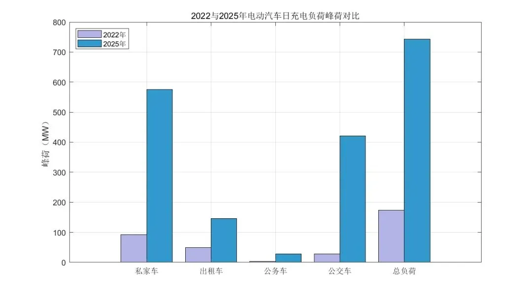 车辆类型 2022峰荷(kW) 2025峰荷(kW) 增长率