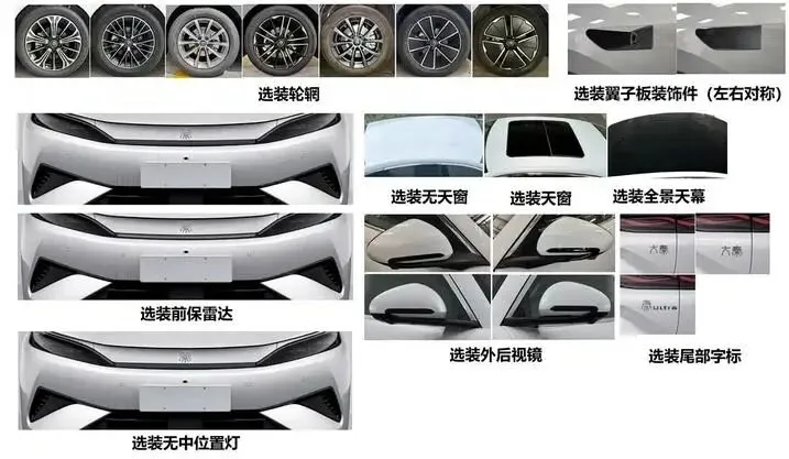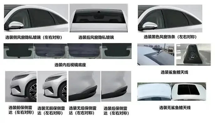 来到车身侧面,配备半隐藏式门把手,车身尺寸方面,比亚迪秦MAX的长宽高分别为4866/1880/1495mm,轴距为2820mm。具体的配置方面,新车还提供轮辋、前保雷达、翼子板装饰件、全景天幕、外后视镜、侧风窗隐私玻璃、黑色风窗饰条等选装配置。