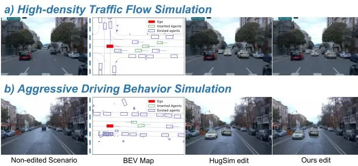 想象一下,你正在训练一个自动驾驶“老司机”。为了让它应对各种突发状况——比如突然窜出的行人、违规变道的车辆——你需要海量的、包含各种“奇葩”场景的驾驶数据。但现实世界的数据往往只覆盖常见情况,那些危险的“长尾”边缘案例可遇不可求。这时候,高保真、可控制的3D驾驶仿真器就成了救命稻草。然而,现有的仿真技术就像一部有瑕疵的特效大片:要么画面精美但场景固定死板(难以编辑交通),要么可以随意摆放车辆但光影假得像贴图。图1:现有视觉仿真方法面临的挑战。(a) 新视角合成质量差,远处物体模糊。(b) 车辆编辑(移动或插入)导致光影不自然、出现重影或接缝。就在大家为此头疼时,一篇名为《SymDrive》的论文号称用一个统一的模型,就能同时搞定“拍得真”和“随便改”这两大难题。它到底是怎么做到的?背后又藏着哪些精妙的设计?今天,龙哥就带你扒一扒这篇让科技圈兴奋的论文。SymDrive:如何用统一模型搞定自动驾驶仿真两大难题?