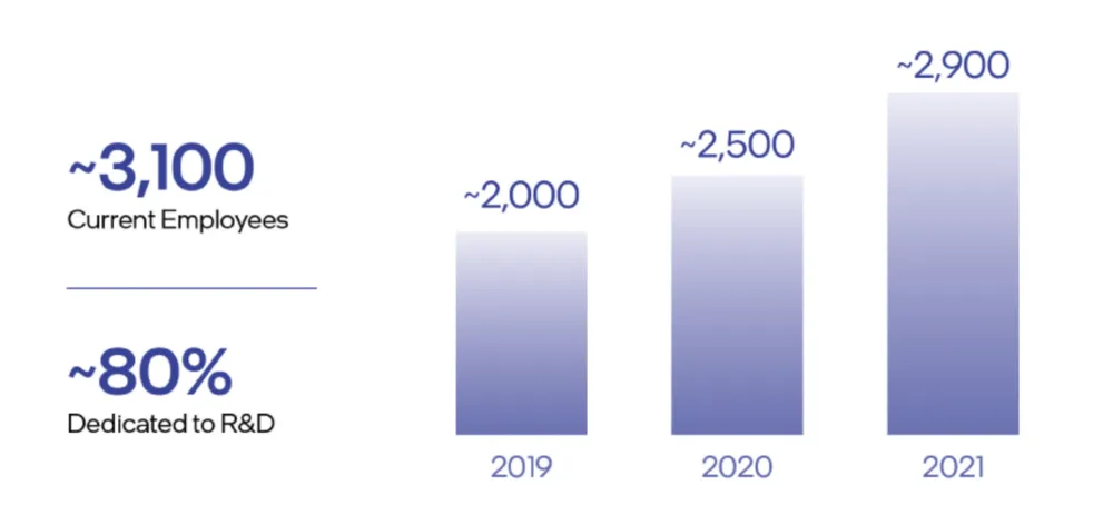 2019~2021年Mobileye员工规模变化。图片来自招股书