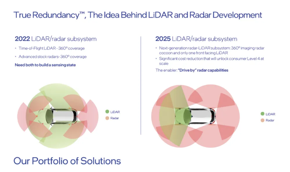 2025年,将一枚激光雷达与达成360°探视的6个成像雷达两个子系统相结合,组成True Redundancy,以低成本达到L4级。图片来自招股书。