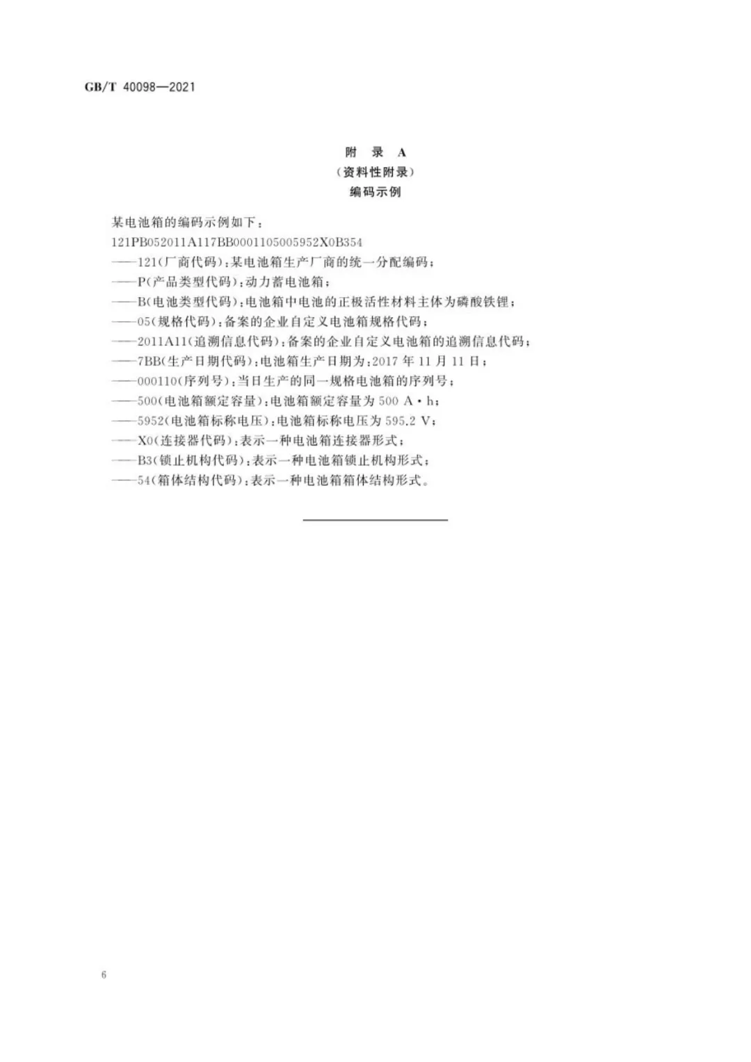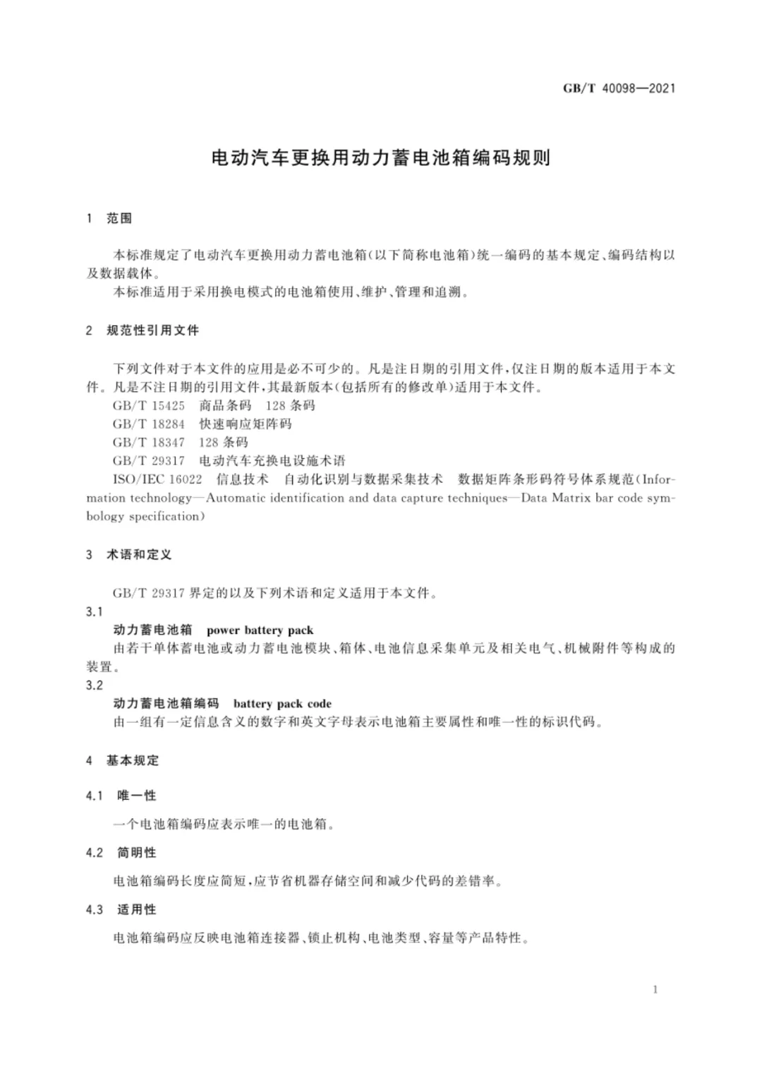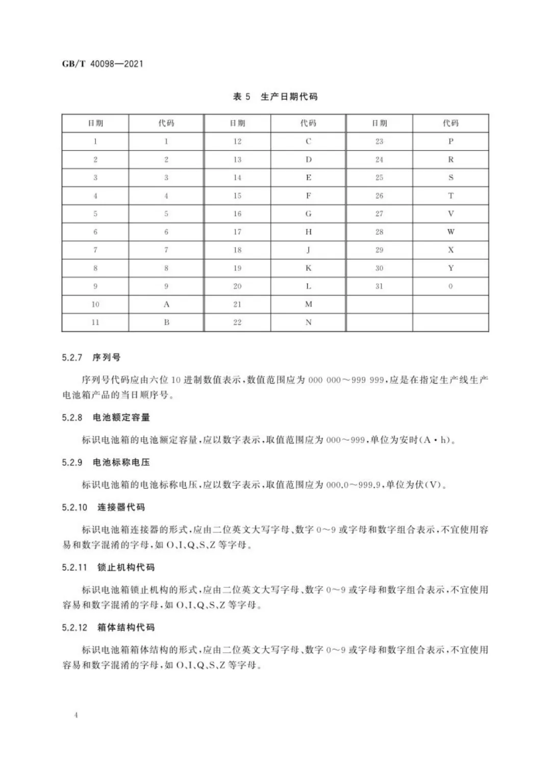 >GB/T 40098-2021电动汽车更换用动力蓄电池箱编码规则