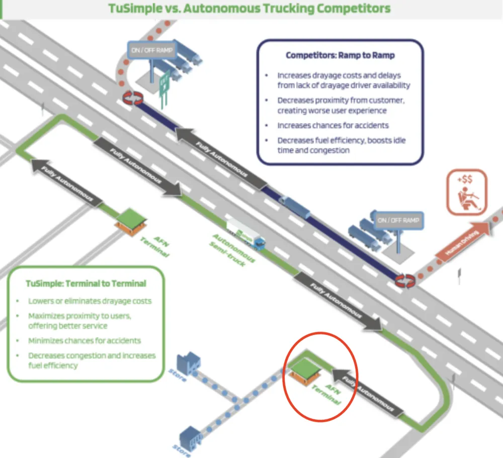 不过根据招股书呈现的自动驾驶卡车运营模式,我们还注意到了两个信息点: