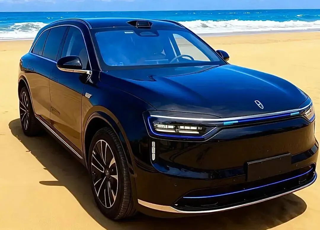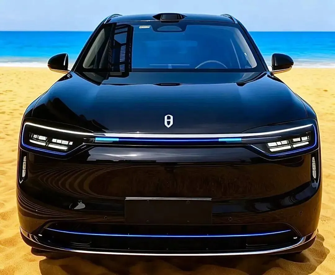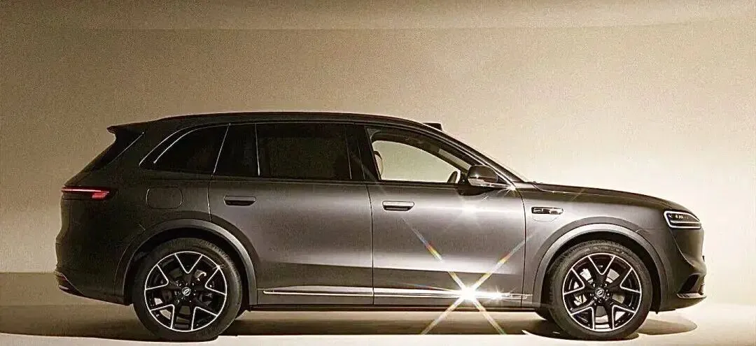 外观细节: 前脸采用封闭格栅,下方留散热口(明显是为增程机准备),车灯沿袭家族风格。侧面隐藏式门把手更利于风阻表现。轮毂外观挺战斗,还藏着红色卡钳,透出一股“别看我家用,其实能跑”的味道。