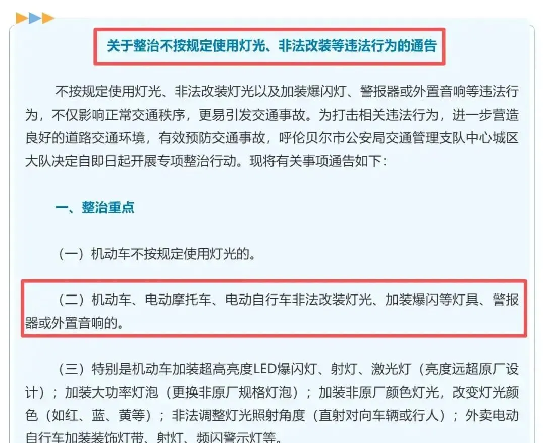 更扎心的是,内蒙古呼伦贝尔交警直接开火:“灯光改装、爆闪灯?别玩了!罚50起步,当场拆!”黑龙江哈尔滨也紧跟着上阵,执法+教育两手抓。我表弟上周还被查,就因为加了外置音响,结果“滋啦”一声,全车人以为他放烟花,差点撞上电瓶车。罚款50,音响没收,他哭着说:“就为图个响亮,真不值啊!”