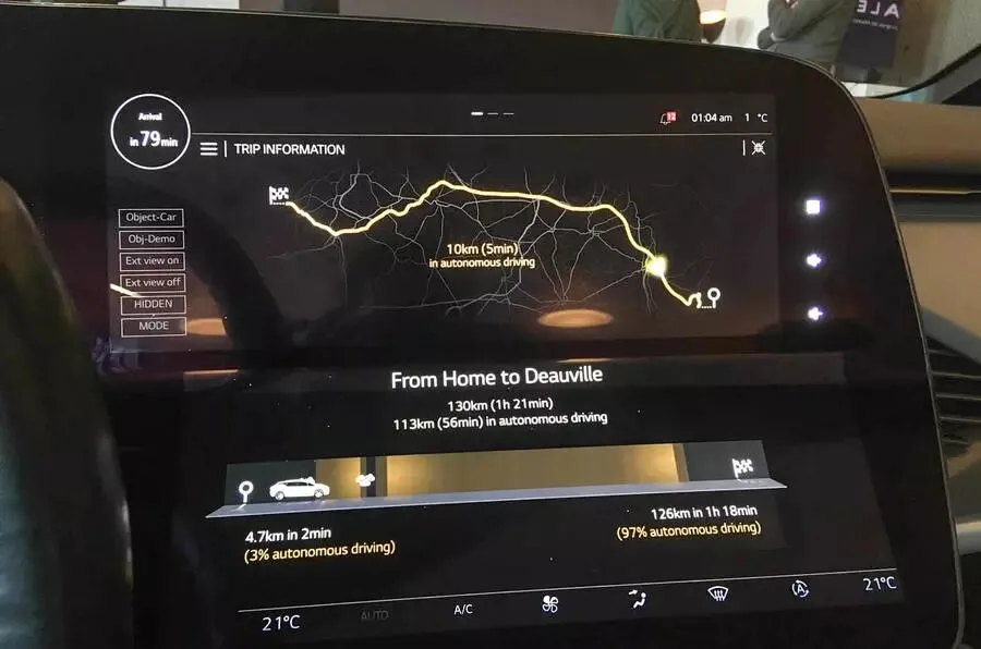 前文已说,雷诺Symbioz Demo的自动驾驶系统达到了4级水平,这就意味着汽车可以在极少人工干预的情况下自动驾驶,使得驾驶员腾出时间处理其他事情,但是由于安全原因,自动驾驶模式试驾期间一直有一名雷诺的工作人员在副驾驶位置陪同,为的是随时收回车辆的控制权。