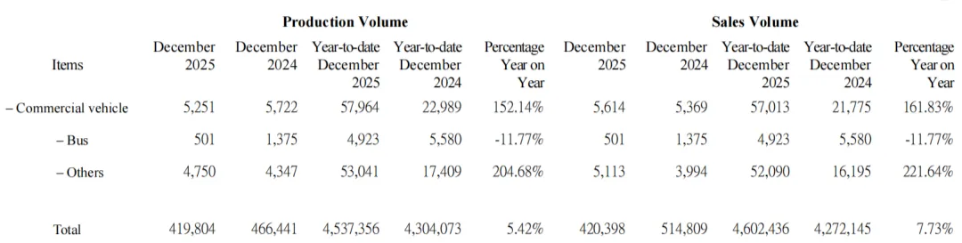 图丨比亚迪 2025 年 12 月总产量与总销售量(来源:比亚迪)