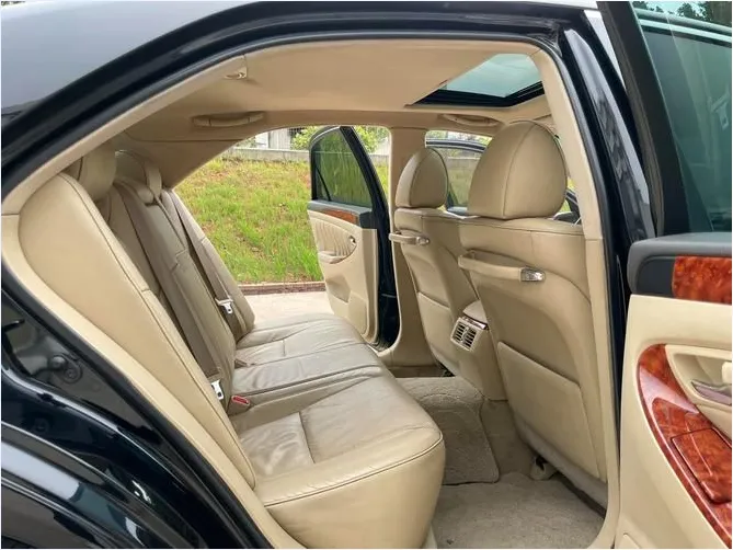 进到车内,我现在打开门。内饰这个豪华感还是有的,.大量的.实木装饰,然后皮革,缝线也比较细致。中控是.12..3英寸的双屏,都是悬浮式设.计,看起来.挺有科技感。然.后.这个支持CarPlay、CarLife、HiCar,三个都能无线互联,这个很方便。我稍微点一.下屏幕,这个流畅度还可以,不过说实话,跟现在一些国产车的大屏相比,这个UI设计还.是有点,有点传统了,就是丰田那种风格,中规中矩。