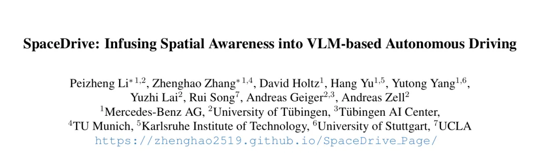 - 论文题目:SpaceDrive: Infusing Spatial Awareness into VLM-based Autonomous Driving