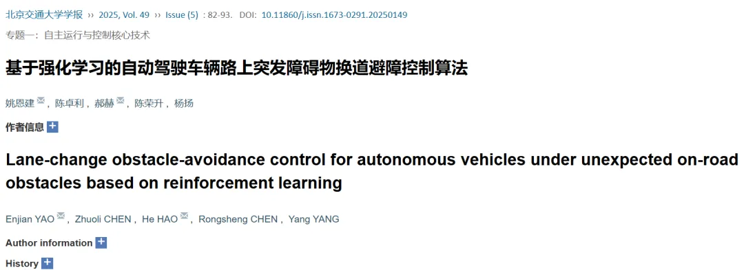 后续研究可围绕不确定性与环境真实性展开。在AC连续控制框架下,可考虑显式刻画不确定性:一方面通过模型集成的方法表征认知不确定性,另一方面以概率输出或混合密度网络描述固有不确定性,并探索分布式/风险敏感强化学习对稳健性的潜在提升;考虑针对更复杂的突发动态障碍(急加减速、急转向、并线插入等)以增加任务难度;为增强仿真的外部有效性,还可基于真实数据集重建背景车流分布以贴近实测驾驶风格;在以上仿真设置的基础上引入感知噪声、执行器饱和与系统时延等工程因素,进行消融与鲁棒性评测。
