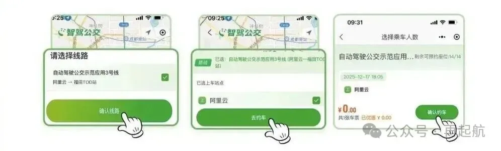 成都9公里自动驾驶公交:预约像抢演唱会,上车像进实验室打开“成都公交”小程序,第二屏灰蓝图标点进去,先弹《安全服务告知》,勾选才能继续——像极了医院挂号。选线路、站点、班次,一步错就重来:系统只给预约发班前10分钟退票,过时不候,有人连抢三天才锁定早高峰8:30。全车14座,一人一座,无站票,二维码实时刷新车辆位置,比滴滴还紧张。车准点滑进站,6米公交外表平平,驾驶舱却薄得像手机边框,方向盘隐藏,安全员手边10英寸监控屏闪着海拔、车速、障碍物距离。车门关闭瞬间,广播循环“请全程系安全带”,不系系统拒绝起步——成都自动驾驶公交把这条写进车载逻辑,比副驾女友盯得还紧。座位软包似高铁二等座,车窗贴红底白字“自动驾驶中”,提醒隔壁车道“别惹我,我在自己开车”。全程平均30km/h,未来科技城内部道路笔直,但遇到加塞会自动减速,刹车力度比老司机更“佛系”,乘客笑称“像坐移动电梯”。9公里环线串起地铁18号线福田站、天府绛溪实验室、民航二所、草池社区,还有刚开业的瑞幸,奶茶香味能被空调吸进来。双向对开,夏季7:00-19:00,冬季7:30-18:30,发车间隔30分钟,目前示范期免费,运营方暗示结束后或改月票20元随便坐。车端6摄像头+3激光雷达+2毫米波,0.1秒刹停;云端BOCC调度中心24小时盯屏,异常路段远程一键限速;安全员持A1驾照+自动驾驶培训证,月薪8000起;标定员每周给激光雷达“校眼”,误差<1厘米,月薪7000-10000;巡检员沿线路步行查井盖、树枝、标线,月薪6000-8000。成都公交已与电子科大、西华大学开“智能网联运维”订单班,首批120人2026年毕业,毕业即上岗,比考研还稳。根据《成都智能网联汽车示范应用行动方案》,2026年底前,高新区、龙泉驿、青白江将再开10条自动驾驶公交,其中3条混行三环主路。票价2元起步,可用天府通刷卡,政府补贴+广告运营兜底。到2027年,车辆规模达500台,覆盖产业园、地铁接驳、热门景区。提前10分钟预约、系好安全带、别把奶茶洒在传感器上——其他的,交给算法。