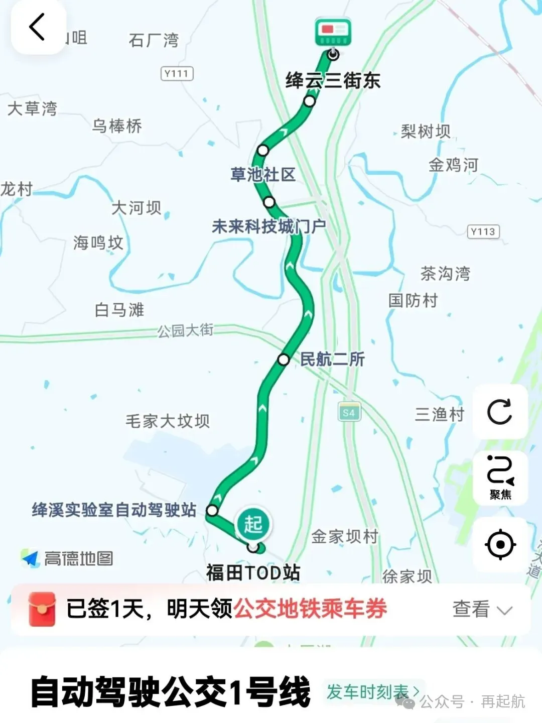 - 往福田TOD站方向:绛云三街→未来大道绛云四街口站→草池社区站→未来科技城门户站→民航二所站→绛溪实验室自动驾驶站→福田TOD站