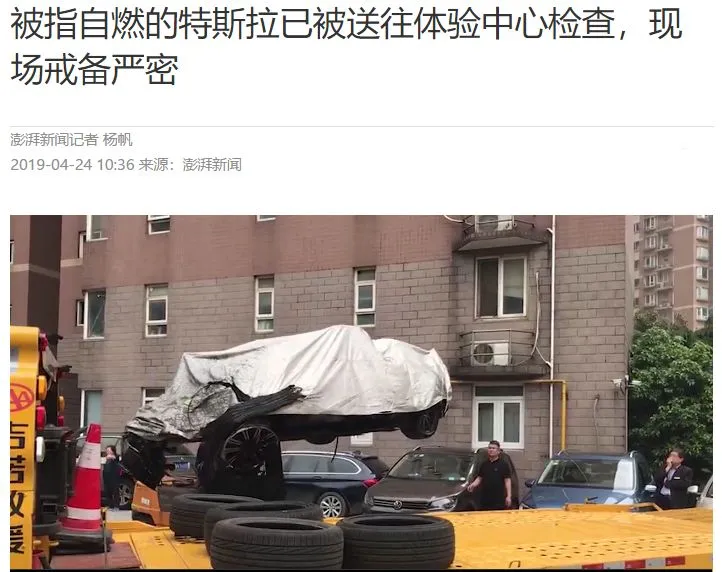 最近那辆自燃的特斯拉被送去检验,初步结果为短路。/ 澎湃新闻