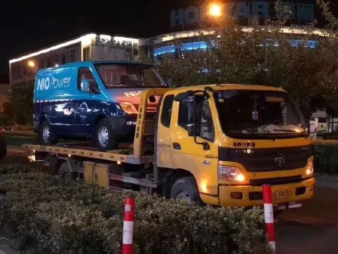 拖板车拉着为蔚来电动车充电的充电车。