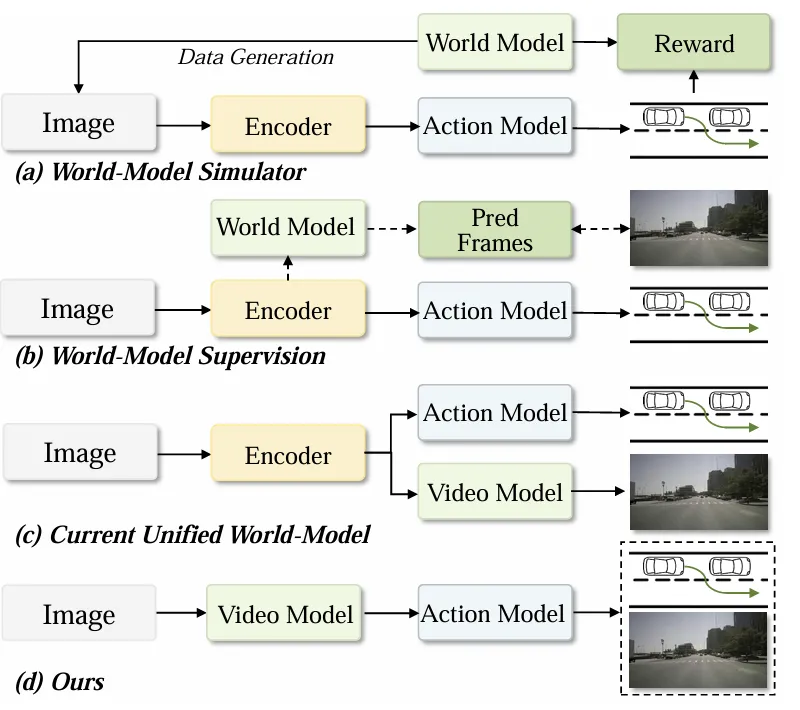 现实中,自动驾驶的“预判”和“决策”往往是“两张皮”:视频生成模块能想象未来场景,却无法将场景中的物理规律、车辆动态等关键信息有效传递给规划模块;规划模块只能基于当下感知做决策,缺乏对未来场景的深度理解。这就导致自动驾驶系统在常规路况下表现尚可,一旦遇到突发状况(比如路口突然冲出的电动车、暴雨天模糊的车道线),就容易“判断失误”,闭环行驶稳定性大打折扣——这正是当前自动驾驶技术的核心痛点。