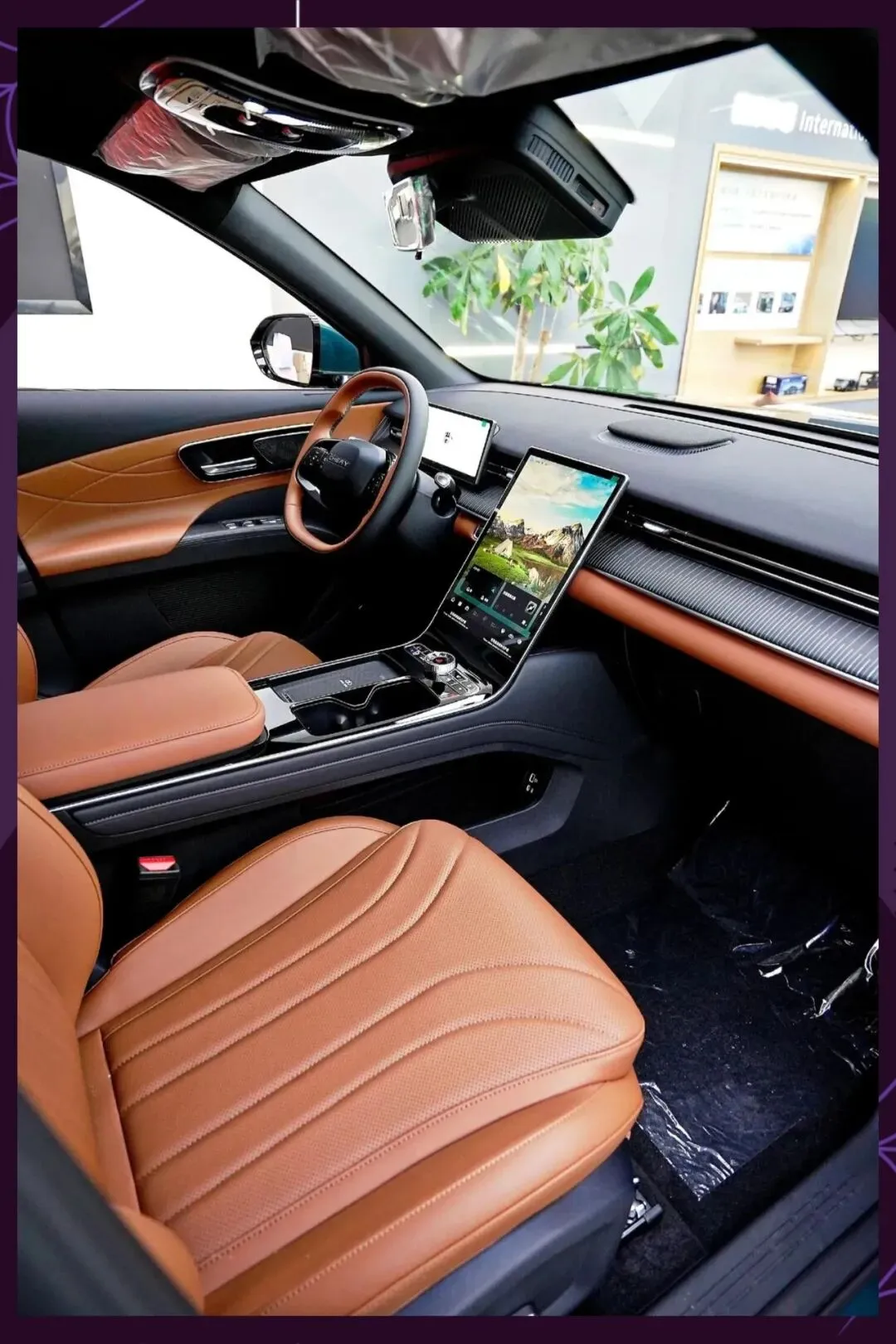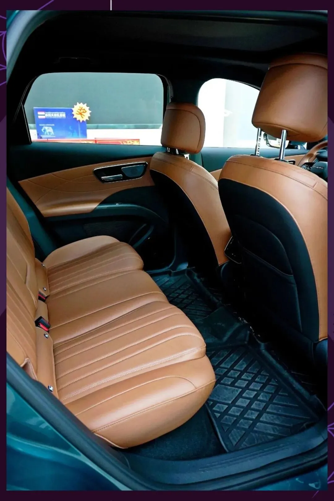 后排的话,我刚才坐进去感受了一下,我178cm嘛,腿部空间非常非常充裕,毕竟轴距加了这么多。然后后排还有小桌板,这个挺实用的,就是带小孩出去玩或者吃东西什么的。全景天窗也有,带遮阳帘,然后还有香氛系统,这个我之前评测的车也说过,就是现在国产车在这种舒适性配置上真的是卷疯了。