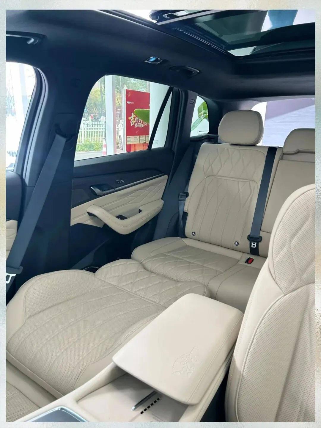 我当时坐进后排试了一下空间,我身高178嘛,前排调到我的位置,后排腿部空间大概两拳左右,就是非常非常充裕的那种。然后它后排座椅靠背角度可以调,这个就很加分,长途坐着不累。