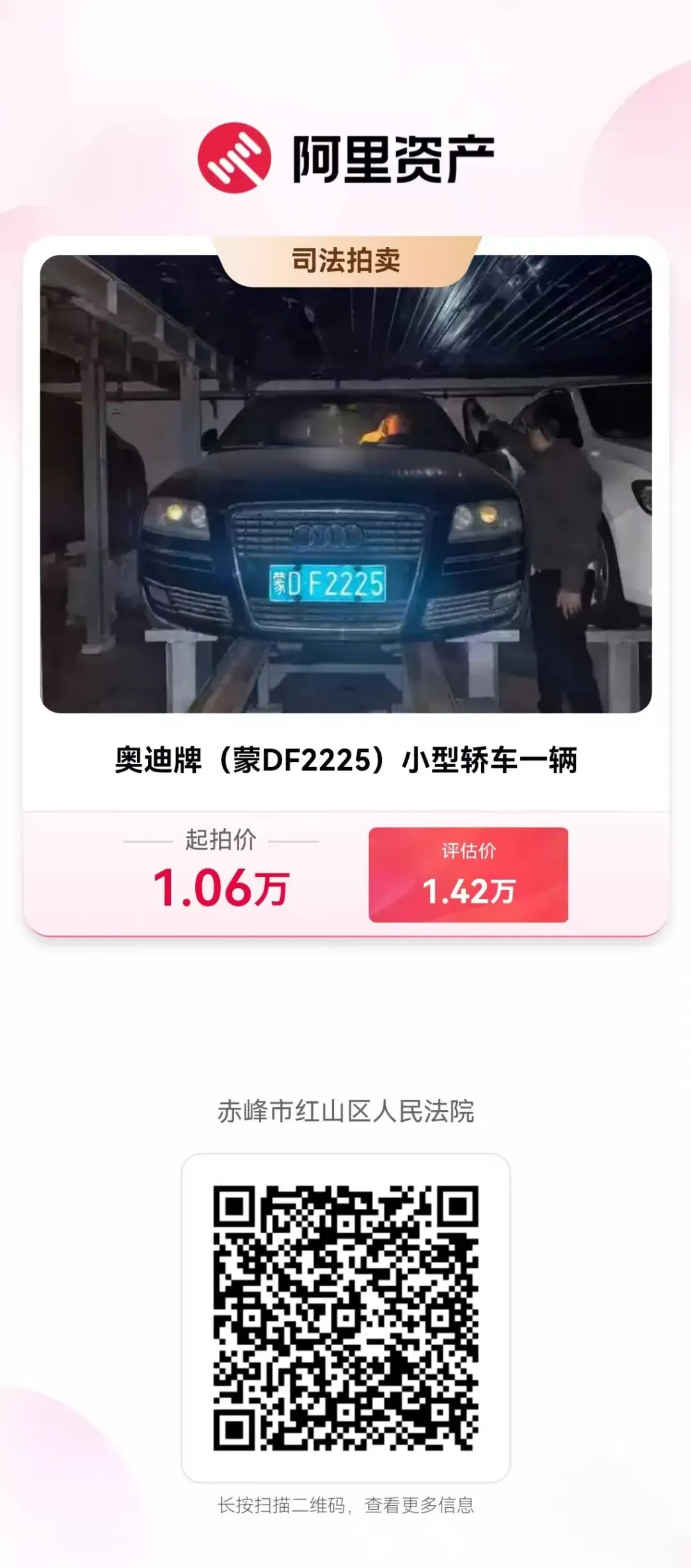 标的介绍 特别提醒: 1. 该拍品由于拍照光线,场地问题,标的物照片仅供参考,具体以本院封存的实物为准; 2. 本次拍卖的标的物具体情况以实物为准,车辆存放期间未进行过维护保养等操作; 3. 违章情况:有违章,年审情况:不详,不带车牌; 4. 所附材料仅供参考,有意者请实地看样,未实地看样者则视为对拍品所有瑕疵详细了解并接受。 5. 车辆类型:小型轿车;车辆品牌:奥迪牌;车辆型号:FV7241CVT;发动机号:105720;车辆识别代号:LFV4A24F673002071;初次登记日期:2008年12月15日;检验有效期止:2024年12月31日;强制报废期止:2099年12月31日;车辆行驶里程:257716公里。 更多拍品信息请关注: 抖音账号:赤峰大成法拍 快手账号:赤峰大成法拍 微信公众号:赤峰市司法拍卖辅助 |