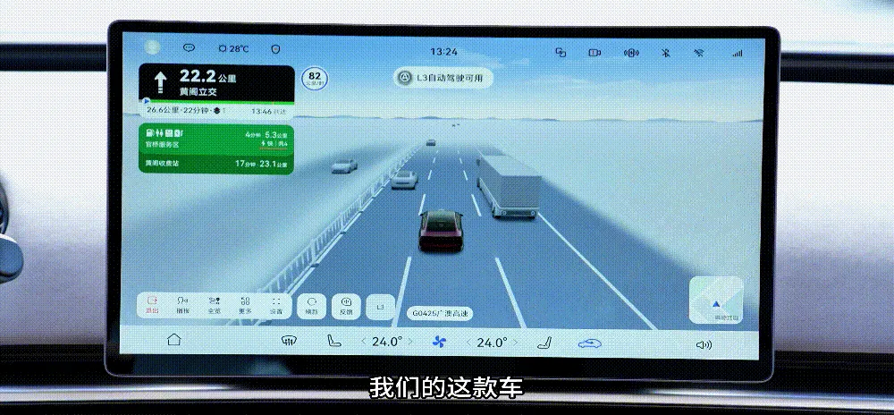 在广汽昊铂发布的实测视频中,一幕场景让我印象深刻:车辆行驶在G0425广澳高速上,中控屏出现“L3”按钮,驾驶者点击激活后,双手完全离开了方向盘。这不仅仅是一个动作的改变,而是驾驶权责的根本性转移。