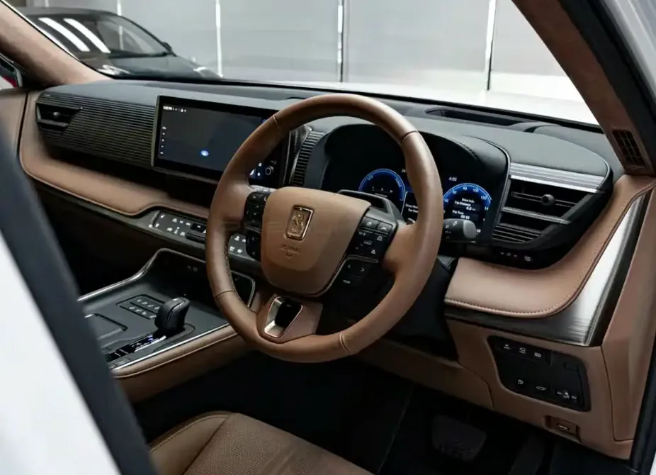 如果说外观是“库里南平替”,那内饰则可直接称为“移动行政休息室”。丰田没有一味追求极简科技感,而是将