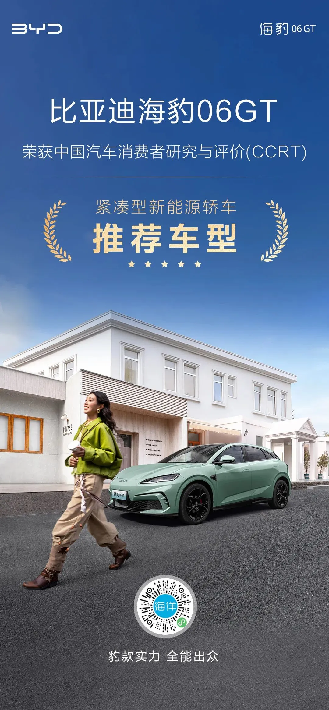 海豹06GT荣获CCRT紧凑型新能源轿车推荐车型