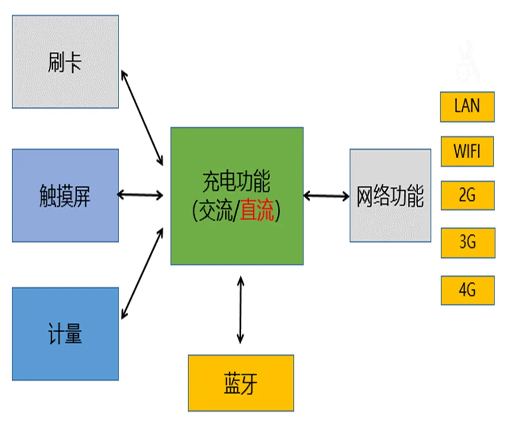 充电桩由桩体、电气模块、计量模块等部分组成。桩体包括外壳和人机交互界面;电气模块包括接触器、控制引导电路、充电插座、电缆转接端子排、安全防护装置等。