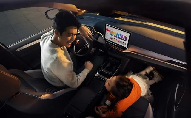 内饰方面,ID.Cross延续了大众ID系列简洁清爽的设计风格,但在细节上进行了优化。中控台采用金属质感饰板和织物材质拼接,这种搭配不仅提升了视觉效果,也让触感更加舒适。用料方面,ID.Cross大量使用环保材质,车内能包裹的地方几乎都做了软性处理,从视觉到触觉都能感受到质感的提升。悬浮式仪表盘和中控屏的组合带来了不错的科技感,同时钢琴式物理按键的设计让操作更加便捷,盲操时也不用分散驾驶注意力,安全性和实用性得到了兼顾。此外,前排中央扶手和中控台一体化的设计为车内腾出了更多储物空间,包包、雨伞等日常用品可以轻松收纳,不再担心车内杂乱。